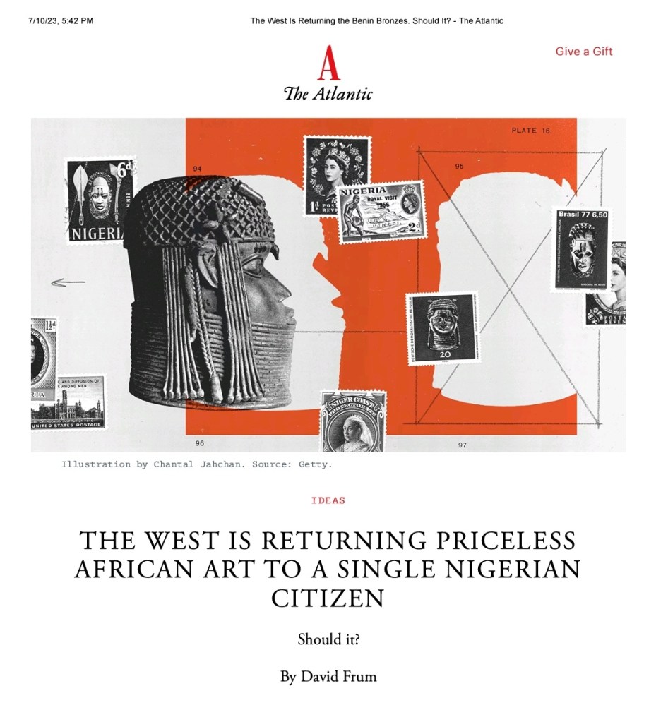 BENIN BRONZES = SLAVERY REPARATIONS