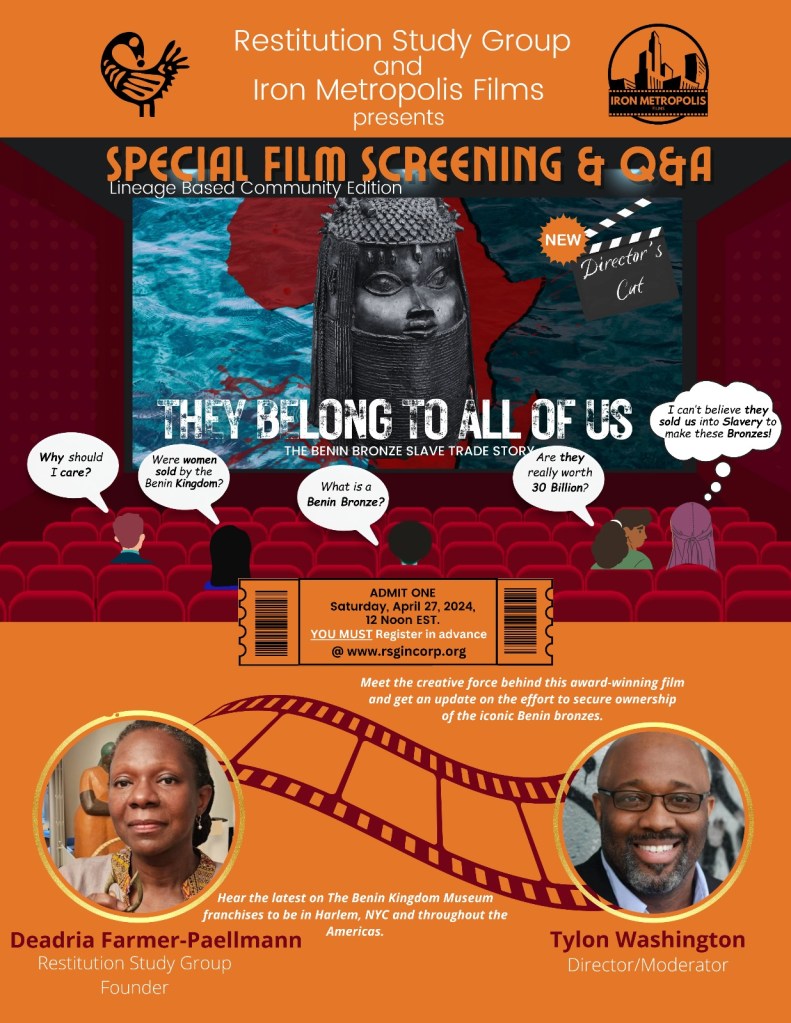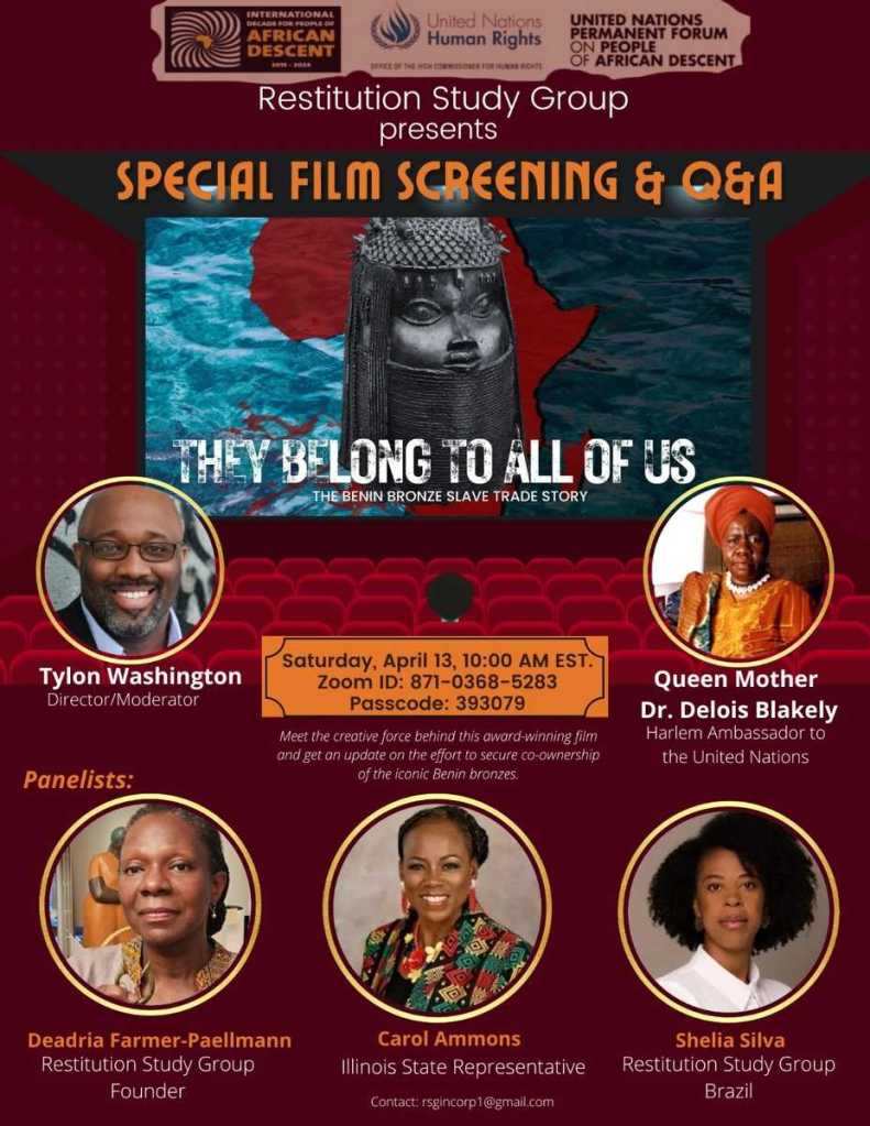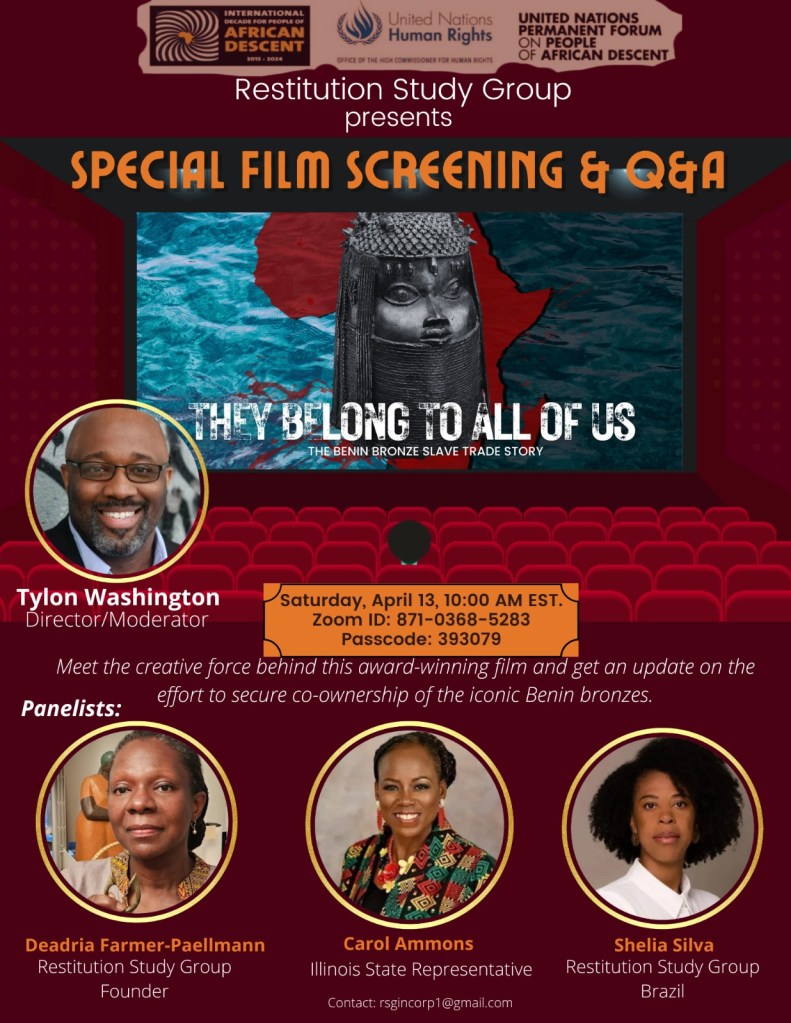Together, these actions affirm Afrodescendants’ claiming their ownership and joint stewardship rights over the Benin Bronzes, shaping the future of the global narrative of justice, truth, and cultural restoration.