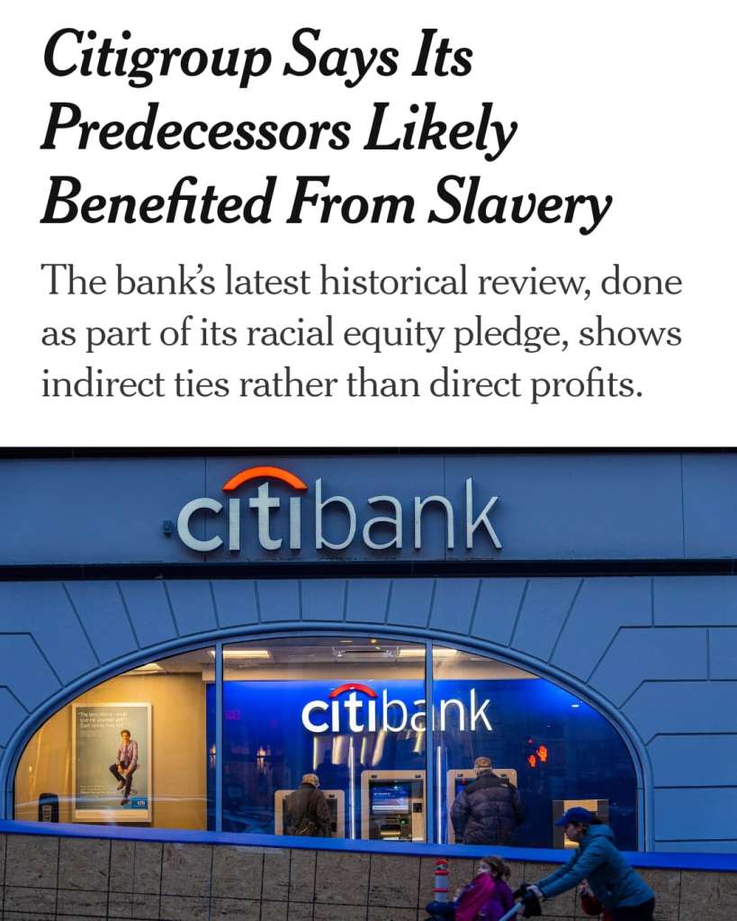 “We applaud the truth today, but truth is not enough,” Deadria Farmer-Paellmann, the executive director of the Restitution Study Group, which researches companies’ ties to slavery, said in an email to The New York Times on Thursday. “We urge Citigroup to reach out to us to discuss an appropriate form of restitution.”