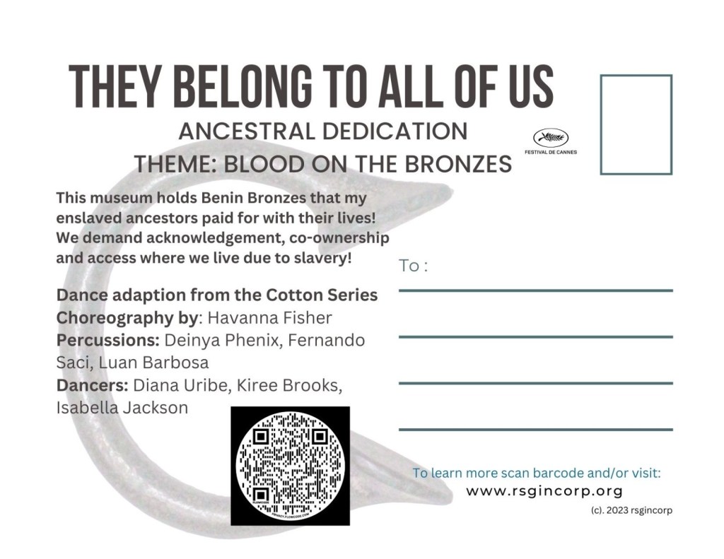 We demand co-ownership of the slave trade Benin bronzes, acknowledgement of the slave trade origin of them, and access to the relics in the countries we live in due to our ancestors’ enslavement and our ethnocide. rsgincorp.org