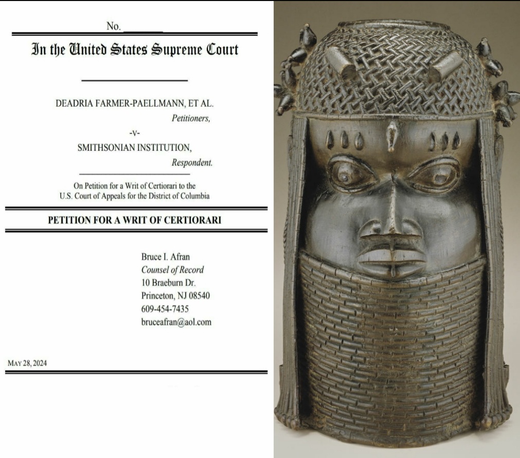 On May 28, 2024, the Restitution Study Group, Inc., a New York based reparatory justice organization led by Deadria Farmer-Paellmann, officially filed a petition for a writ of certiorari with the United States Supreme Court in Washington,  DC. The petition seeks to address significant legal questions surrounding the Smithsonian Institution’s recent actions regarding the repatriation of the Benin Bronzes.