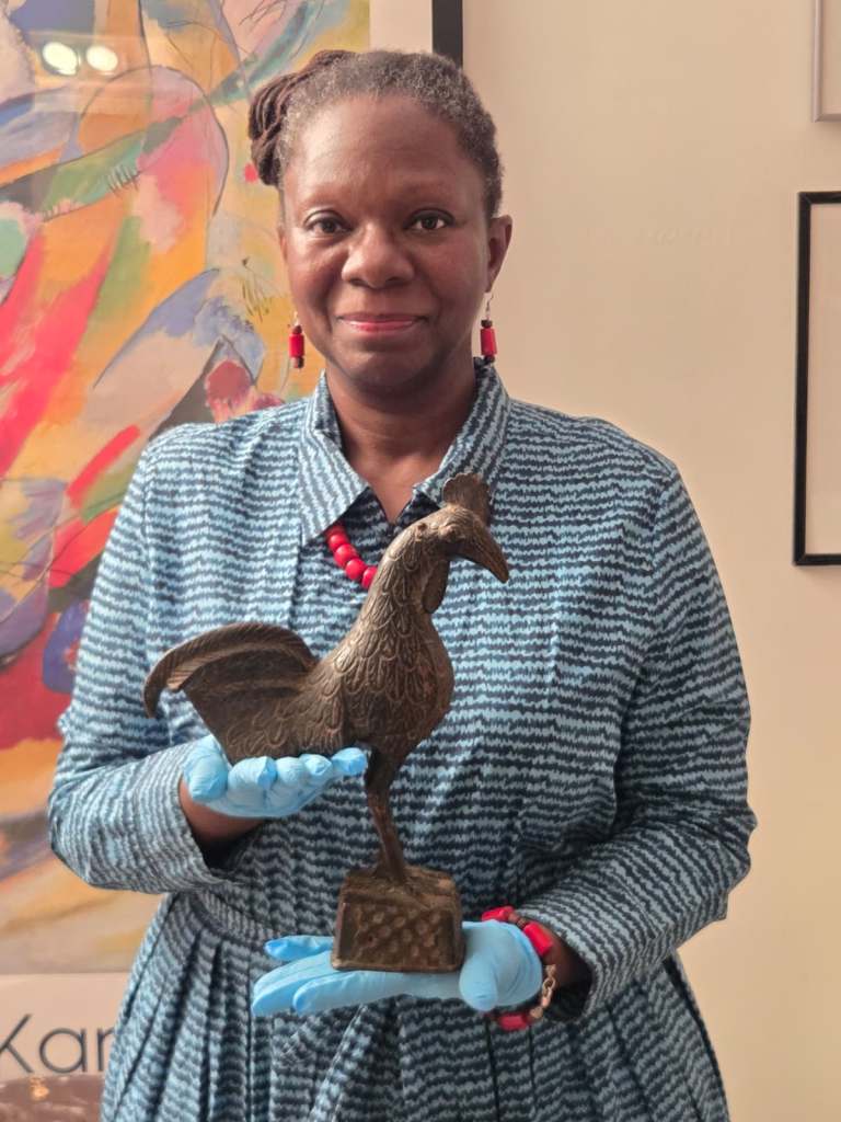 The bronze was purchased from a Manhattan antique shop and gifted to RSG Executive Director Deadria Farmer-Paellmann. Preliminary analysis by Dr. Tobias Skowronek, a leading authority on Benin metalwork, confirms the piece as genuine, with alloy composition and casting techniques consistent with early 1600s Benin court traditions.